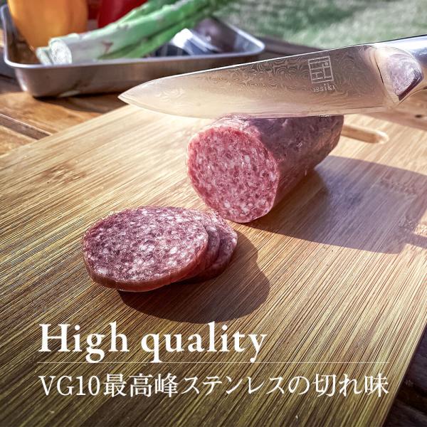 【切れ味】最上位クラスの品質を持つVG10ステンレスを高品質ステンレスで挟み込んで作られた刃は、プロも愛用するほどの素晴らしい切れ味を誇り、耐摩耗性に優れているため切れ味が長持ちします。