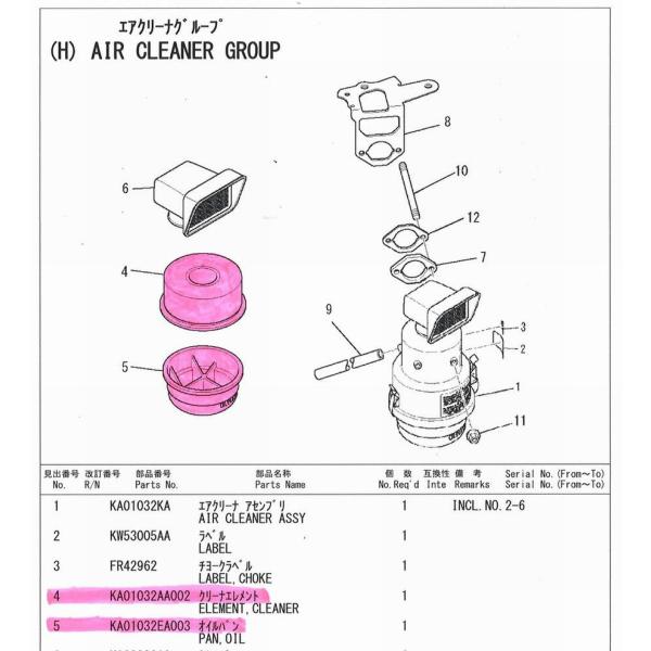 部品番号 : KA01032AA002(エアクリーナエレメント)