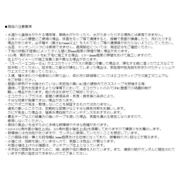 ・多様な模様様や大きな色幅があるので、施工前に仮並べをして色合い・模様の確認をしてください。