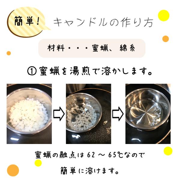 アロマキャンドルやリップバーム、石鹸、ワックスバーなどの素材としてご利用頂けます。