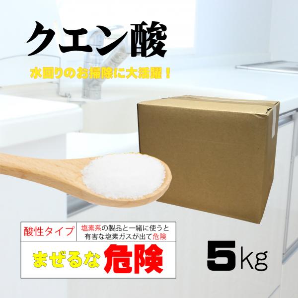 クエン酸5kg 日本製 送料無料 酸性 汚れ落とし 消臭 石鹸カス落し 黄ばみ落し アンモニア臭 漂白 台所除菌 除菌剤 アカ落とし 染み抜き