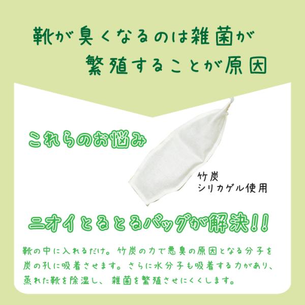 ニオイとってバッグ竹炭BC10個入 日本製 竹炭 消臭 調湿 除湿 カビ 結露 湿気 靴 下駄箱 トイレ クローゼット 押入れ 車 タンス ブーツ 消臭袋 臭い 除湿