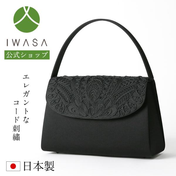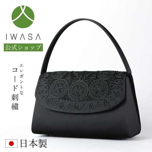 岩佐公式 フォーマルバッグ 日本製 大きめ 岩佐 布製 ブランド コード刺繍 葬儀 お葬式 弔事 慶弔両用 かばん 黒 喪服バッグ 冠婚葬祭 法事 法要 iw60032
