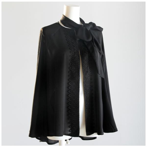 ボウタイ付きレースアクセントケープ 6nr4201 フィルフルール 羽織もの ボウタイ付き 寒さ対策 体型カバー フリーサイズ 冠婚葬祭 慶弔両用 法事 法要