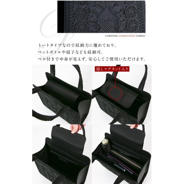 全面コード刺繍トート型フォーマルバッグ