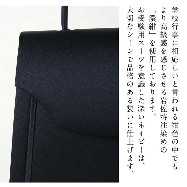 お受験用スーツを意識した深いネイビーは、大切なシーンで品格のある装いに仕上げます。フォーマルバッグの職人が生み出す岩佐のお受験バッグ。