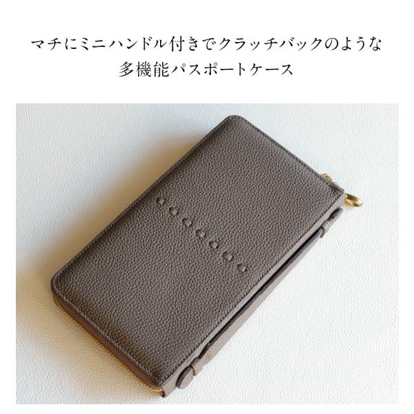 マチにミニハンドル付きで、バッグを思わせるシルエットの多機能パスポートケース。