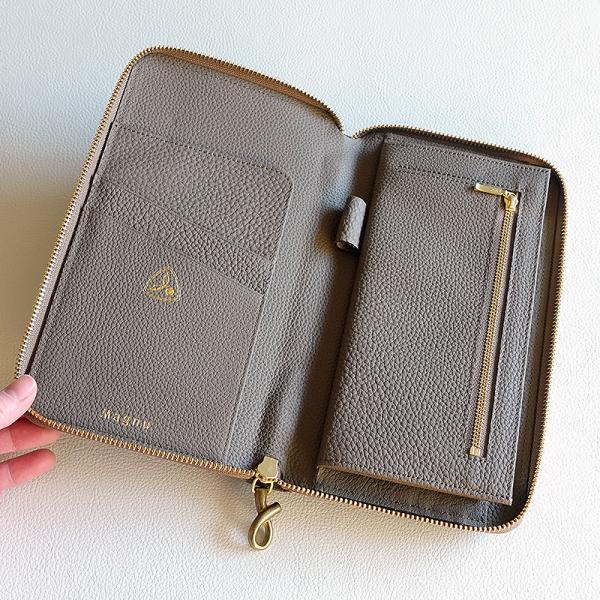 内部の収納にこだわっており、パスポート入れはもちろん本格的な財布としての機能も備え、