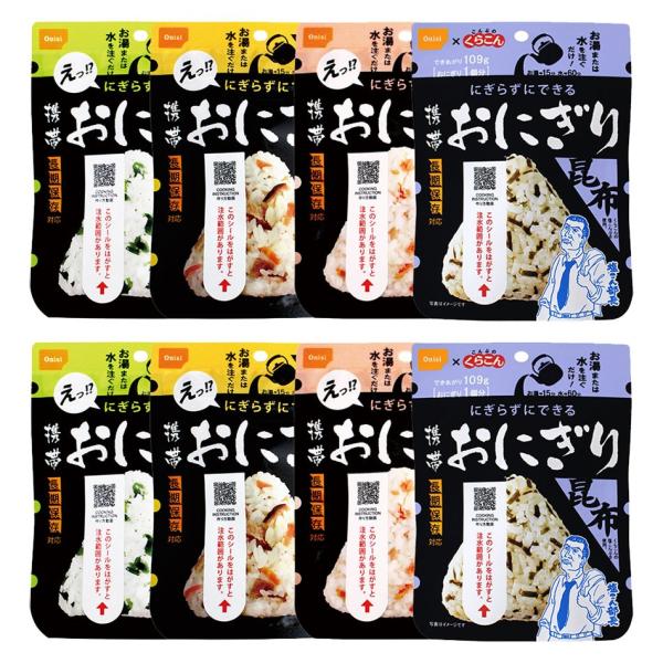 保存食 尾西食品 携帯おにぎり8食分(五目 昆布 鮭 わかめ 各2個)非常食 非常用 保存食 賞味期限 5年 保存 アルファ米 レトルト 備蓄 食料 キャンプ アウトドア