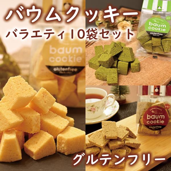 バウムクッキー バラエティ10袋セット(プレーン4袋・抹茶3袋・コーヒー3袋 / グルテンフリー / 国産米粉 / 新鮮こめたまご贅沢使用 / 出雲ファーム)