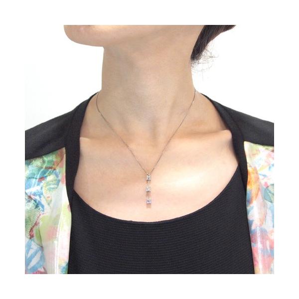 3連のスクエアカットダイヤが上品ダイヤモンドネックレス。ダイヤモンドは宝石鑑定士が見て、輝きの素晴らしいものを使用しています。高品質ダイヤモンドを使ったネックレスをお探しの方におすすめの商品です。【PD02168】