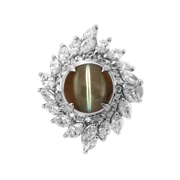 キャッツアイ リング ダイヤモンド プラチナ シャトヤンシー
