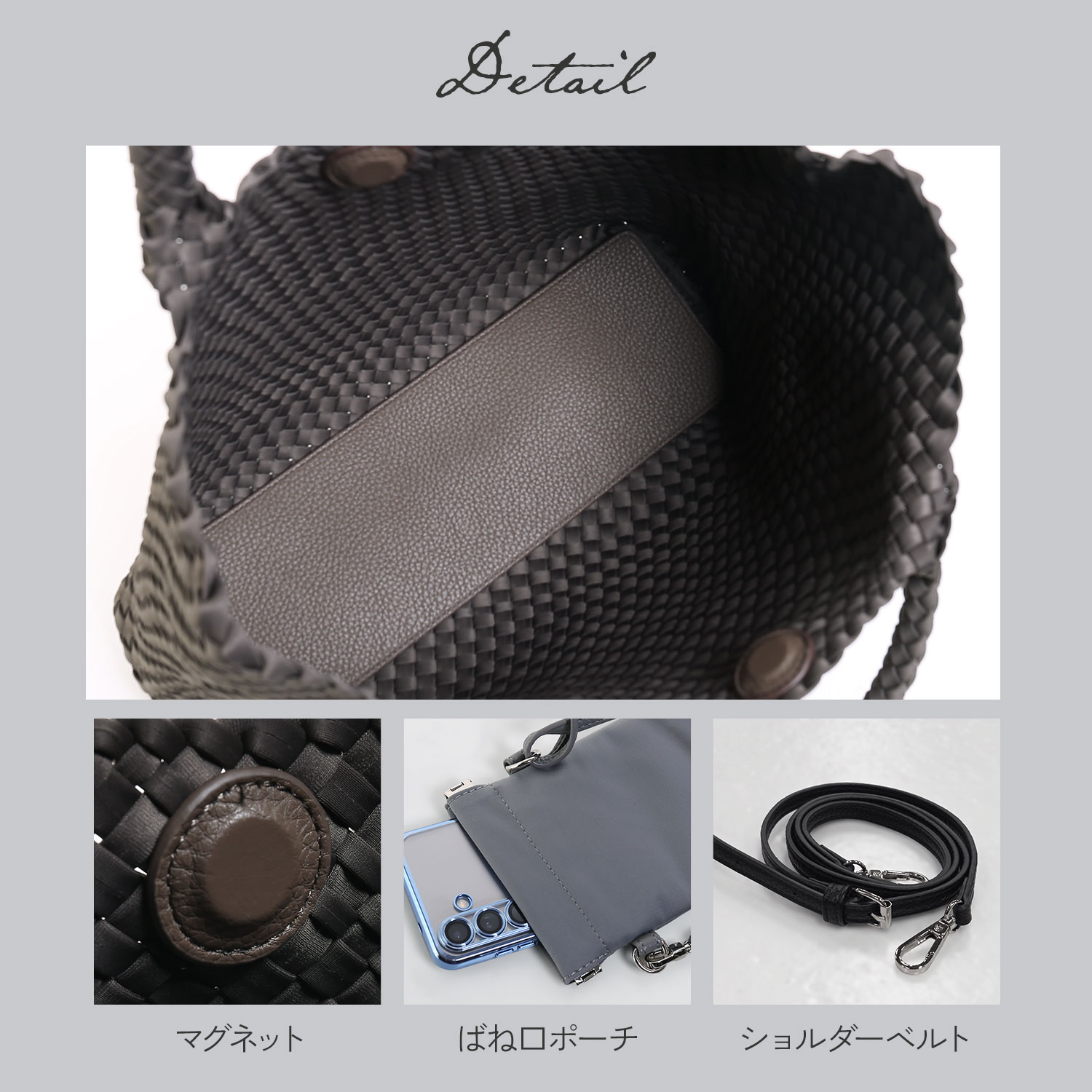 さらりとした手触りのナイロンメッシュを採用。通気性のある見た目と扱いやすさを両立し、汚れや水濡れにも配慮したデイリー素材です。