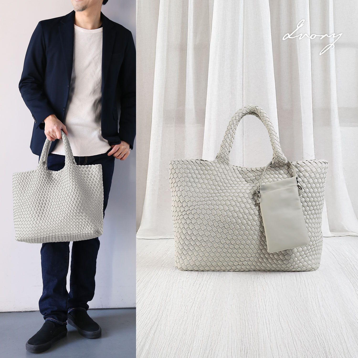 ※キーワード:エレナ メッシュバッグ トートバッグ ナイロンメッシュ 大容量 底板入り ポーチ付き さらさら 大サイズ 通勤 旅行 普段使い 収納力 軽量 自立 メッシュバッグ mieno ミエノ ナイロン バッグ デイリーユース ポーチ 取り外し可能