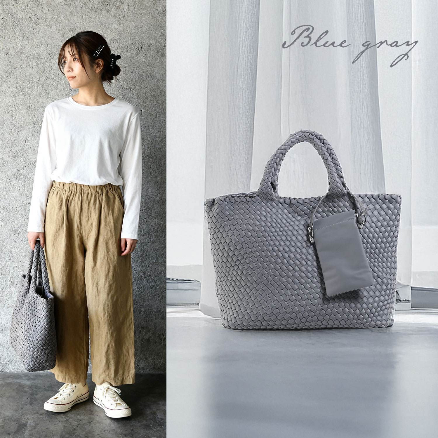 編込みトート ナイロンメッシュ 大容量 底板入り ポーチ付