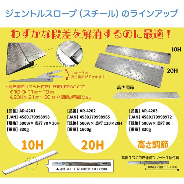 ジェントルスロープ-スチール 20H 1枚 AR-4202 段差解消スロープ 20mm(2cm)程度の段差を解消に AR4202