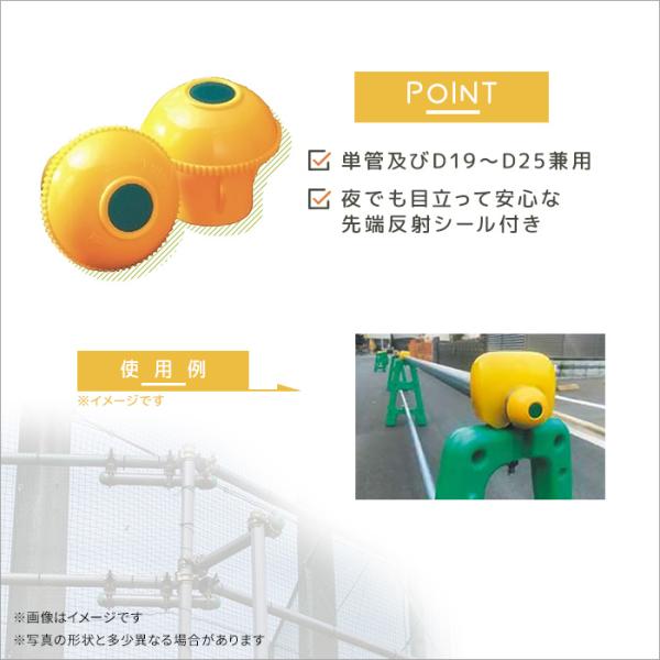単管キャップ(キャッピカ)黄色200個セット(反射シール付き)AR-0091 (アラオ)樹脂製 Φ48.6単管パイプ,鉄筋,エンドキャップ AR0091