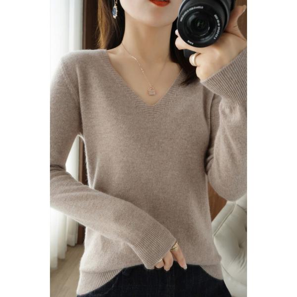 Vネックセーター レディース プルオーバー 無地 ウールセーター ニット 薄手 【代引き不可】