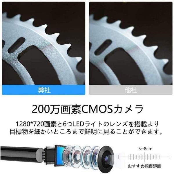 ワイヤレス内視鏡カメラ USB 内視鏡カメラ Type-C検査カメラ 200万画素 3in1 高画質CMOSカメラ搭載 6つLEDライト付き