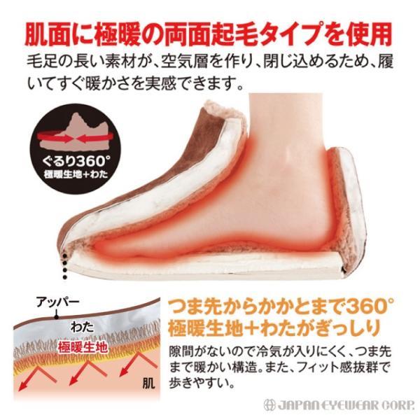 ・つま先からかかとまで360°極暖生地+わたがぎっしり!