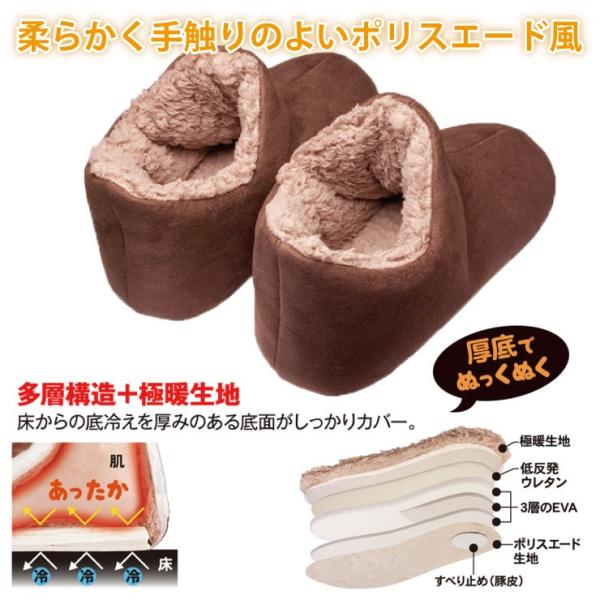 極暖 スリッパ 足が包まれる 暖かい モコモコ ルームシューズ あったか スリッパ 防寒 ボア 寒さ対策 冷え性 あったかグッズ 室内履き 冬 足先 寝る時 あたたか