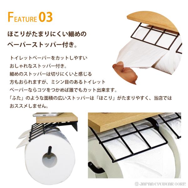 ほこりがたまりにくい細めのペーパーストッパー付き