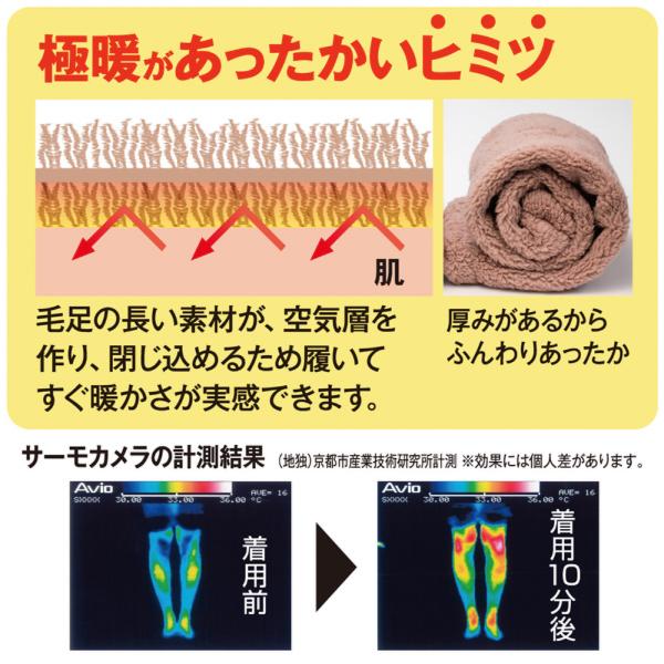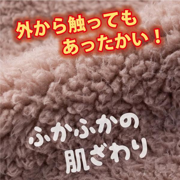毛足の長い素材が、暖かい空気層を作って閉じ込めるため、履いてすぐ実感できます。