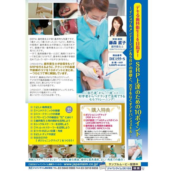 このDVDでは、歯科衛生士が自信をもってSRPを行えるように、テクニックの基礎や訓練のコツを10ポイントにまとめ、一つひとつ丁寧に解説しています。