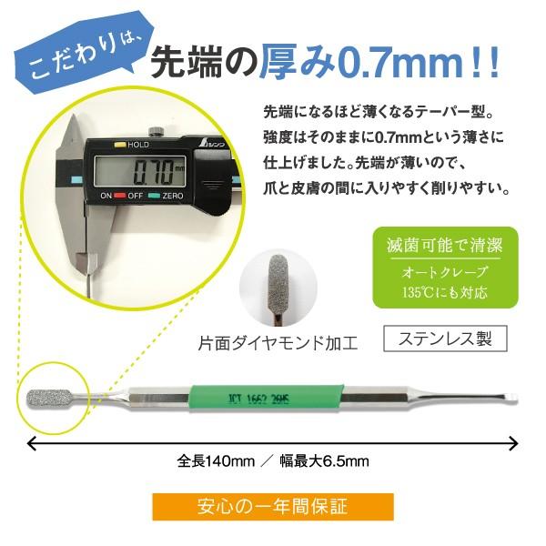 ダイヤモンド角用爪ヤスリ(細) ゾンデ ・爪ヤスリ / フットケア・ネイルケア 爪のお手入れに / 滅菌可 / 日本製 <1年間保証付>