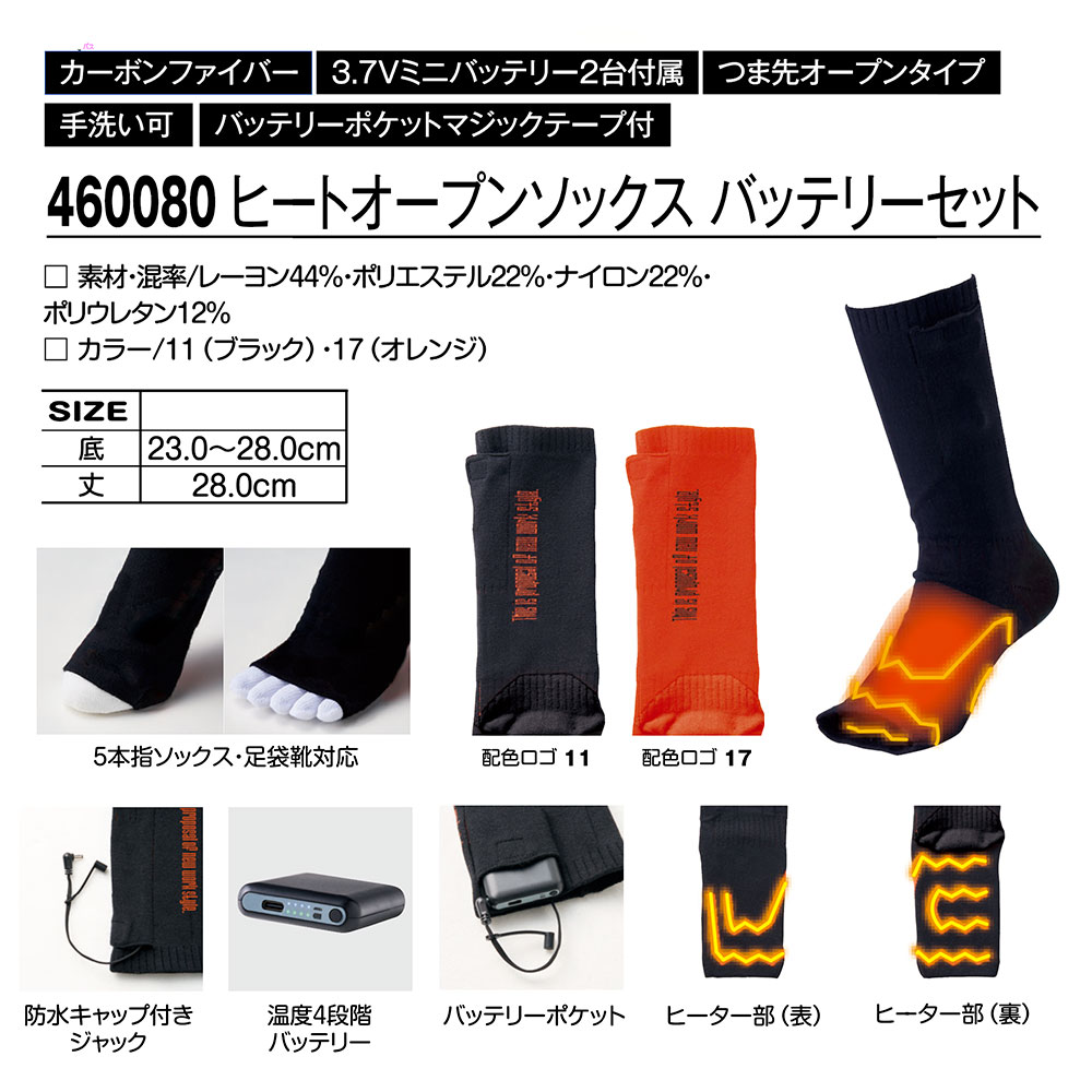黒 オレンジ ヒートオープンソックス 電熱靴下 ヒーター付き靴下 暖かい めちゃ暖 冬用ソックス あったか靴下 冬用 防寒グッズ 寒さ対策 冷え対策 防寒アイテム 冬 ブランド カジュアル キャンプ アウトドア イベント スタッフ DIY ガーデニング 土木 工事 鉄鋼 製鉄 製鋼 建築 建設 大工 鳶 設備 清掃 ビルメンテナンス 工場 運送 倉庫 軽作業 営業 配達 配送 宅配 農業 農作業 畜産 仕事服 工事現場 建設業 野外活動 屋外作業 庭師 船上用 雪かき 洗車 園芸 造園 制服 ユニフォーム デリバリー 出前 フィッシング 釣り 渓流釣り 釣り用 漁師 漁師用 魚屋 魚屋用 漁業 水作業 水産業 農作業 農業用 農業 災害対策 長時間加熱 急速加熱 極暖 ヒーターソックス 温度調節