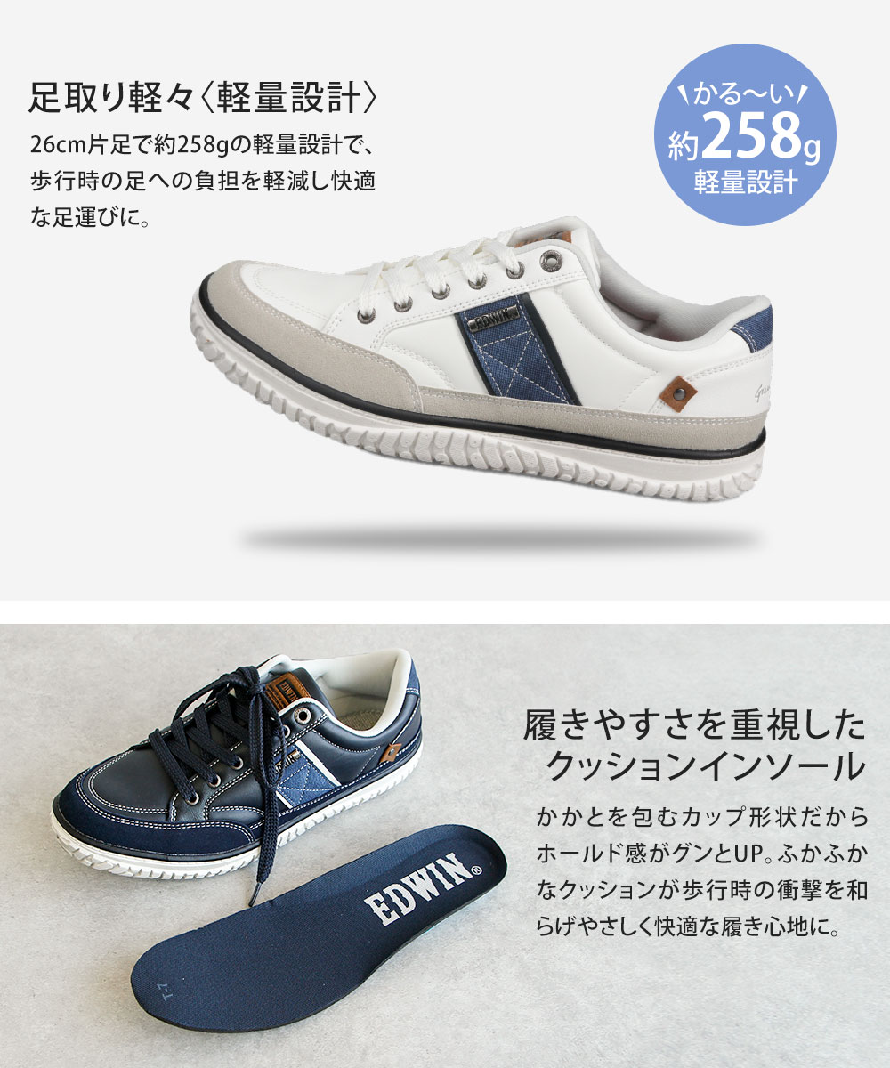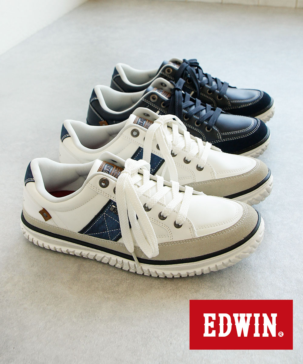 エドウィン スニーカー メンズ ローカット 履きやすい 歩きやすい 軽い クッションインソール シューズ 靴 紐 カジュアル アウトソール汚し加工 7770 EDWIN 爆買