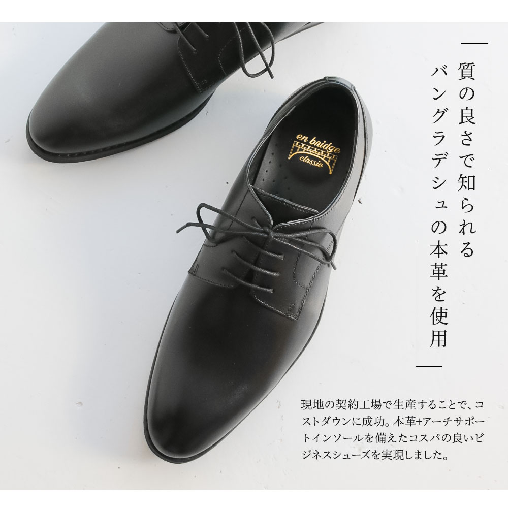 本革 ビジネスシューズ メンズ プレーントゥ 外羽根 革靴 紳士靴 フォーマル 冠婚葬祭 通勤 定番ト インソール 疲れにくい 黒 ブラック EN BRIDGE CLASSIC 881