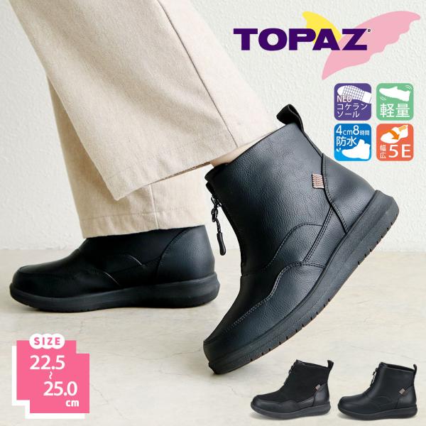 トパーズ スノー ブーツ レディース 滑らない ショート 防水 凍結 裏起毛 幅広 5e 歩きやすい 防寒 防滑 軽量 レイン コンフォート シューズ 靴 3409 TOPAZ 爆買