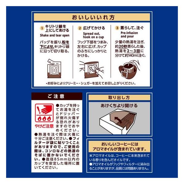 【商品説明】ブラック派にもおすすめの調和のとれた味わい。“実”のまま天日で乾燥する、ナチュラル精選豆50%以上使用。コーヒーの実の果肉の甘みと旨味を、コーヒー豆にぎゅっと凝縮。Wロースト製法:“コク専用”焙煎ד香り専用”焙煎。それぞれ目的別に焙煎してからブレンド。【仕様】●ワンドリップコーヒー●ドリップタイプ(1杯抽出型)●注文単位:1パック(7g×36杯分) <ジェットプライス>