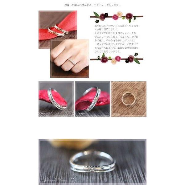 結婚指輪 PT100 プラチナ10% 安い レディースリング ダイヤ 0.07ct アンティーク ミル打ち 指輪 マリッジリング 爆買