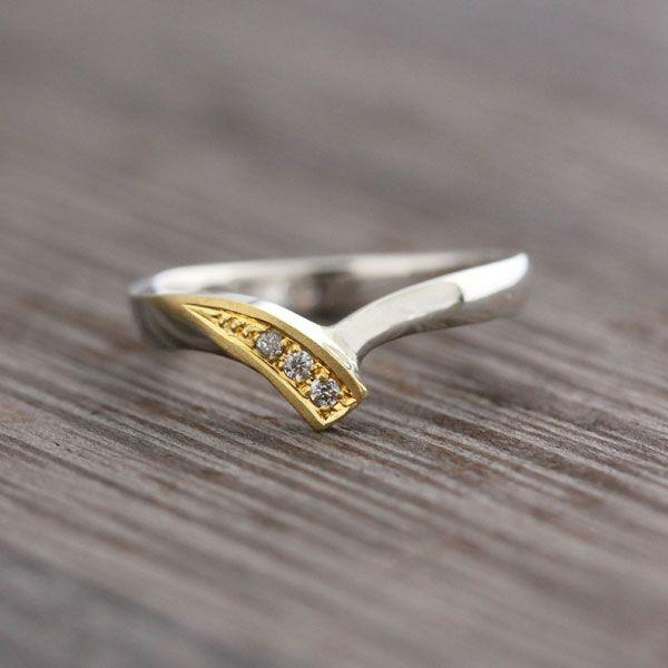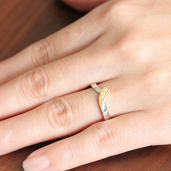 指輪 レディース プラチナ 18金 コンビ V字 ダイヤ