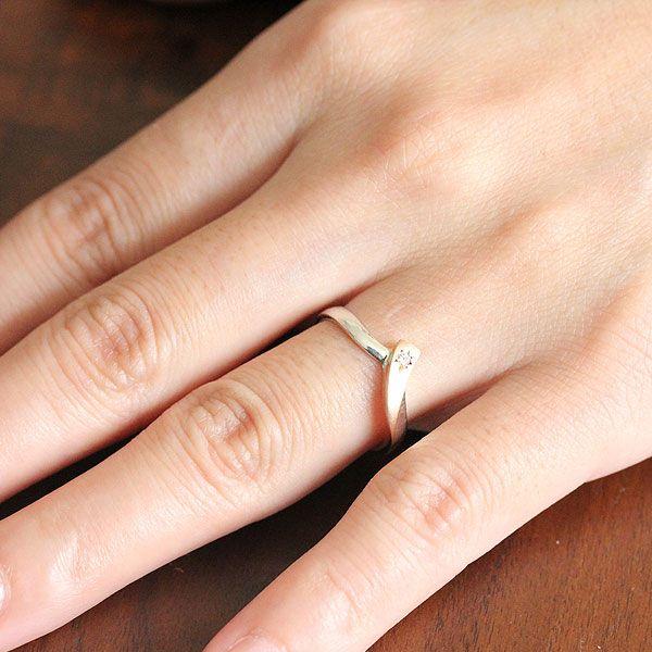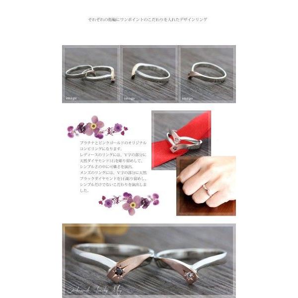 指輪 カップル プラチナ 18金 コンビ V字 ダイヤ
