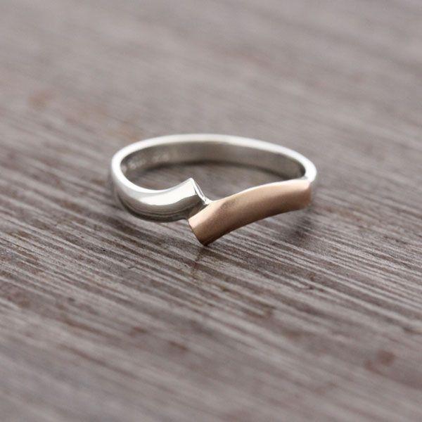 クロスに重なり、波打ったデザインが個性的なコンビリング。