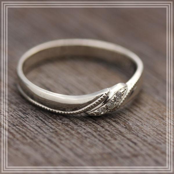 結婚指輪 プラチナ PT900 シンプル ダイヤ 0.03ct レディース 単品 ミル打ち 結び目 指輪 プレゼント