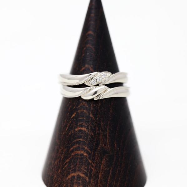 指輪 カップル プラチナ ミル リボン ダイヤ 絆 結び