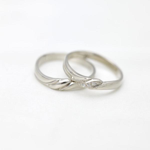 結婚指輪 安い プラチナ ペアリング PT900 ミル打ち アンティーク 結び目 ダイヤ 0.03ct 指輪 カップル