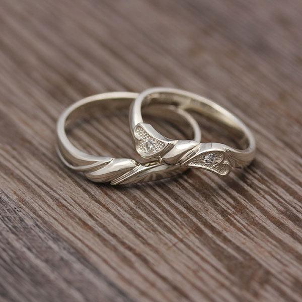指輪 カップル プラチナ ハート リボン ダイヤ