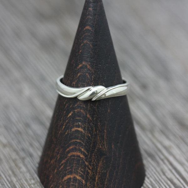 シンプルなリボンの結び目にラインを添えたクールなメンズリング。