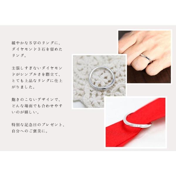ラインの右上側に沿ってダイヤ3石を留めたリングです。