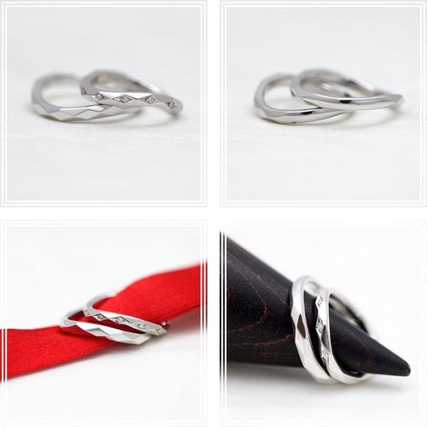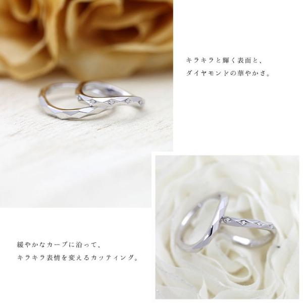 結婚指輪 安い プラチナ ペアリング PT100 pt10% ダイヤ 0.04ct ミラーカット ウェーブ S字 指輪