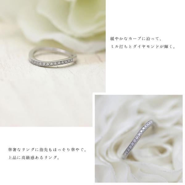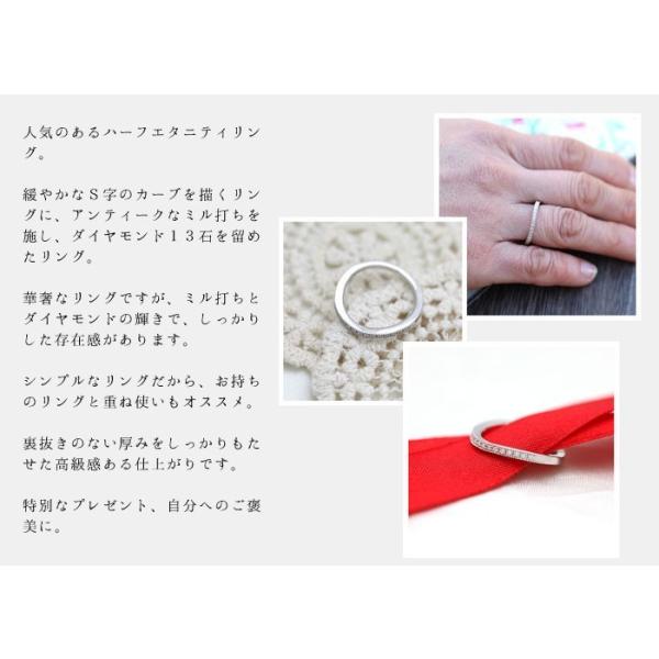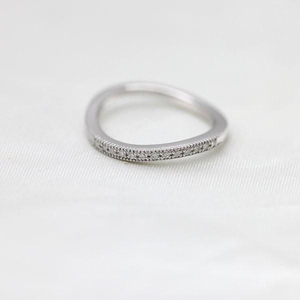 結婚指輪 安い プラチナ レディースリング PT100 pt10% ハーフ エタニティ ダイヤ 0.08ct 細め S字 ミル アンティーク 指輪