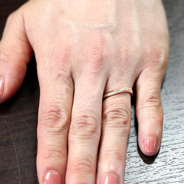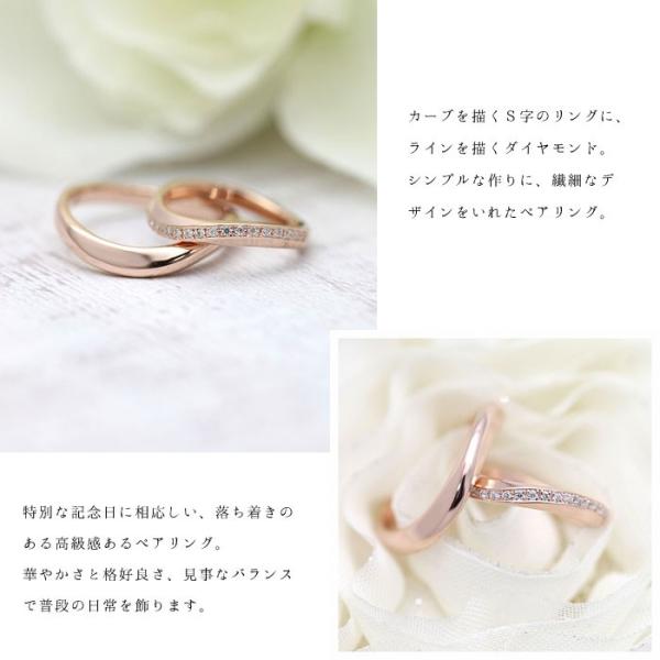 結婚指輪 ペアリング ピンクゴールド K10PG ダイヤ 0.10ct ウェーブ S字 指輪
