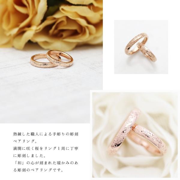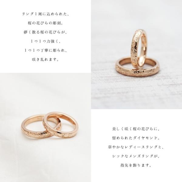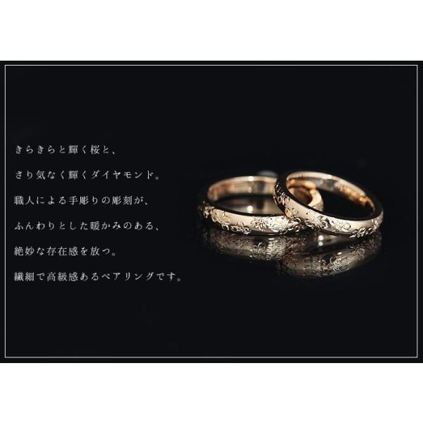 結婚指輪 ペアリング ピンクゴールド K10PG 手彫り彫刻 桜 ダイヤ 0.03ct リング 10金 ペア