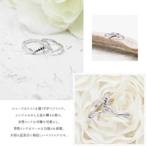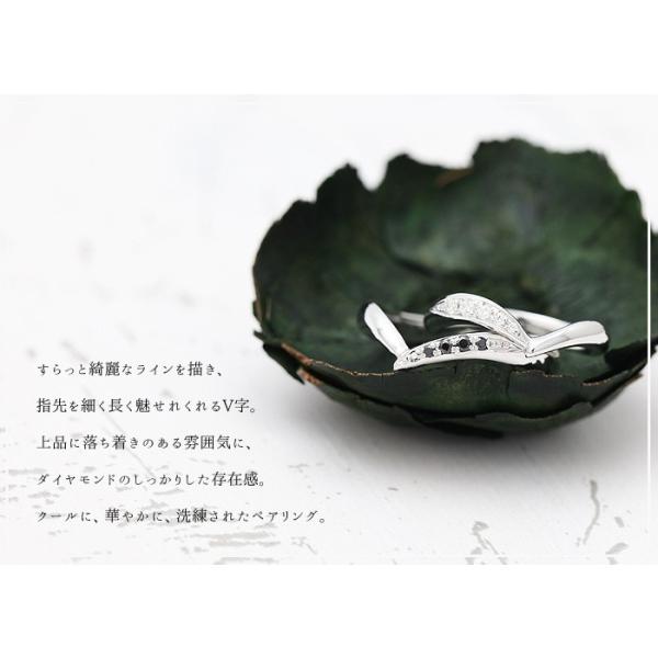 結婚指輪 安い プラチナ ペアリング PT100 pt10% V字 片側留め ダイヤ 黒ダイヤ 0.07ct 指輪 カップル 爆買