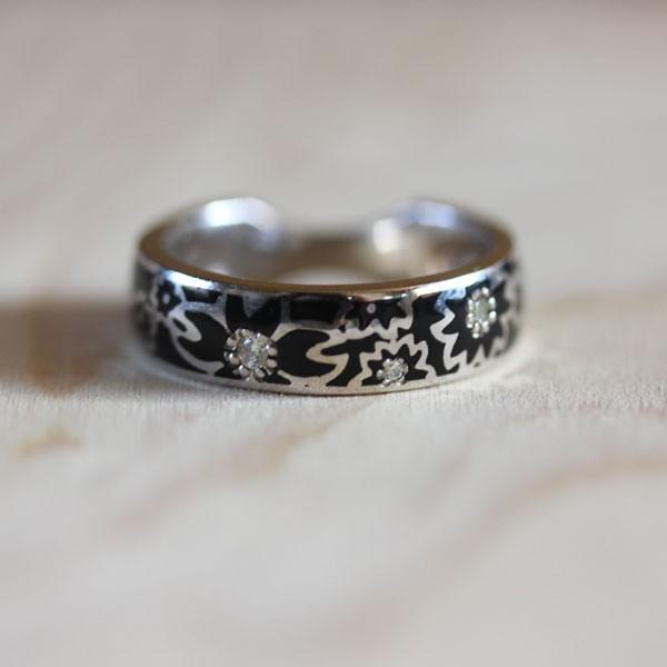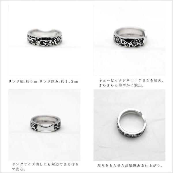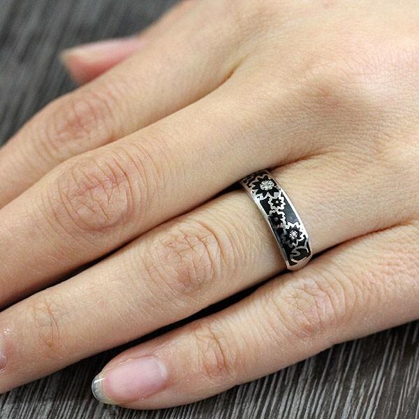 指輪 桜 リング SV925 レディースリング 5-14号 細め 黒/黒 キュービックジルコニア シルバーリング